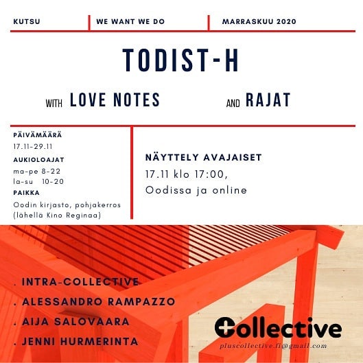 Muun muassa sanataidetta ja arkkitehtuuria sisältävä, PlusCollectiven ja Sabina Morandi tuottama poikkitaiteellinen installaatio Todist-H, Kalasataman vapaakaupunkitila sana Helsinki Design Weekiä ja Oodi, 2021, yhteistyössä InTra collectiven taiteilijoiden ja valokuvaaja Alessandro Rampazzon kanssa.
